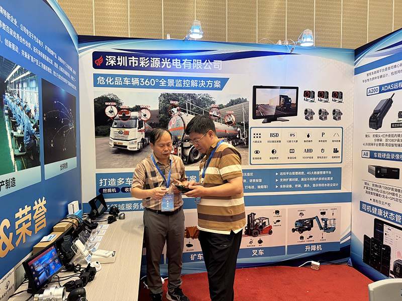 在展区,彩源光电特别展示了与中国石油昆仑物流的合作成果——危化品运输360°全景监控解决方案。作为高危领域的典型应用,该方案的核心设备——卡仕特H100D车载系统,成为全场关注的焦点。