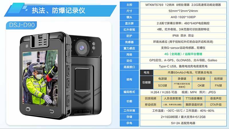 DSJ-D90执法记录仪:双摄像头、红外夜视,支持多平台接入,成为应急执法的利器。