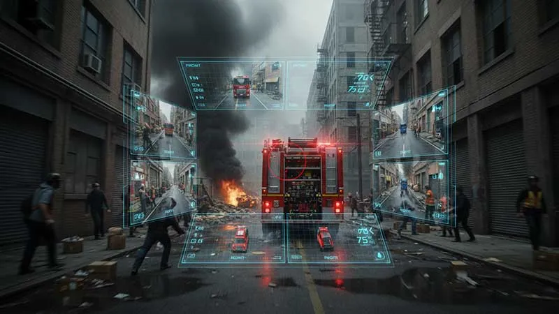 凌晨两点,某消防队接警:市区一栋居民楼突发火灾。烟雾已从窗缝中滚滚渗出。道路狭窄、灯光昏暗,居民慌乱撤离,电动车、私家车杂乱停放在街口。此时,消防车需要在最短时间内穿过拥挤街巷,以最快速度抵达现场。然而,在浓烟、黑暗、狭巷、盲区的多重挑战下,驾驶风险与救援速度往往成为难以兼得的两难。