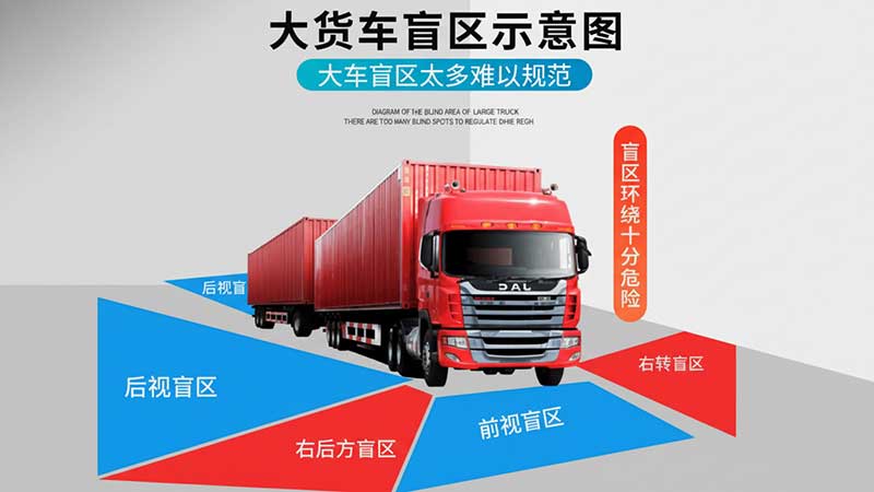 卡车的体型高、车身长、车辆结构复杂,决定了它天生就存在多个“黑暗地带”。