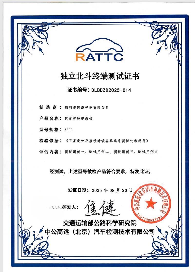 在车联网与智慧交通全面升级的背景下,行驶记录仪已成为车队监管、驾驶安全管理和合规执法的必备工具。近日,卡仕特A800汽车行驶记录仪凭借卓越的性能与安全性,顺利通过了独立北斗终端测试认证,获得了由交通运输部公路科学研究院下属机构颁发的权威证书。这不仅是对产品技术实力的高度认可,更是国产化自主创新道路上的又一座里程碑。